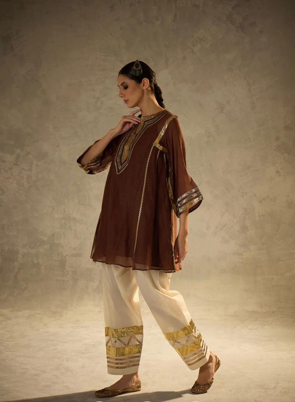 Here We Are Presenting Our Premium Cotton Cord Set with Beautiful Gotta Lace Work on Kurti Yoke and On Bottom Also.