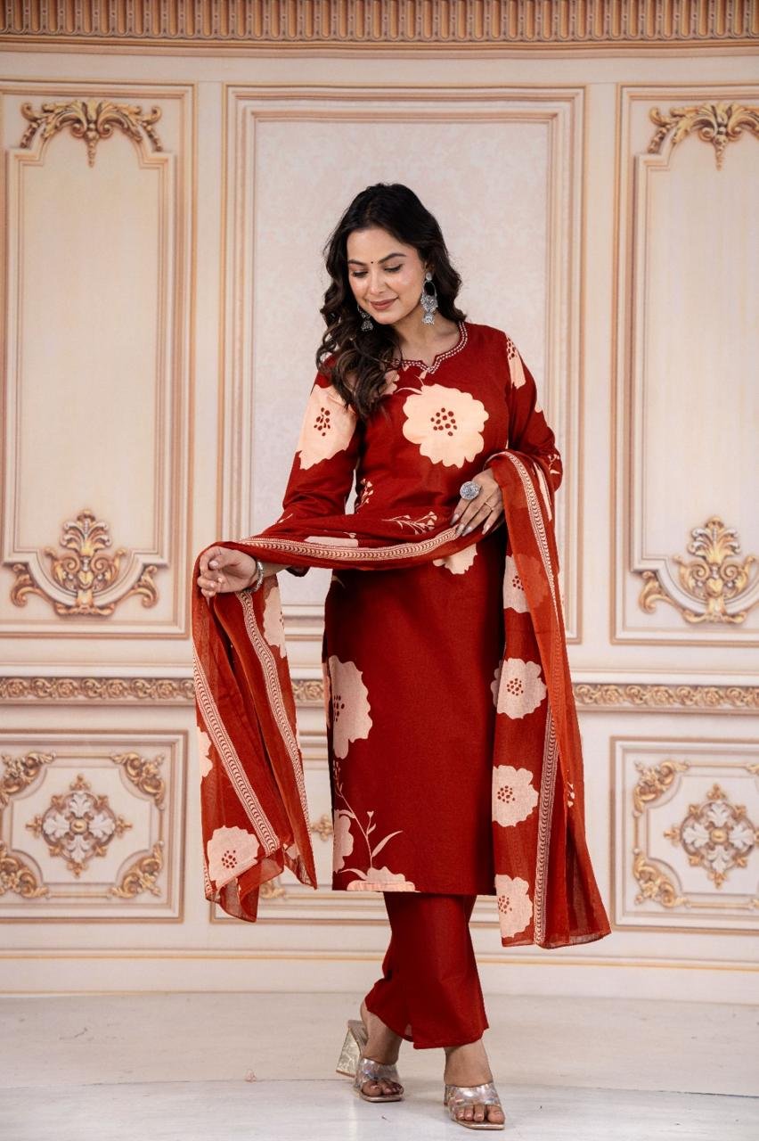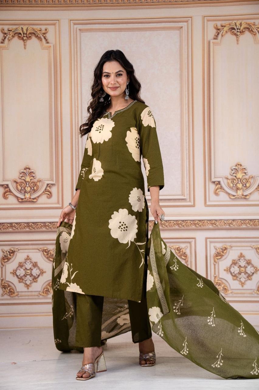 We Are Here to Spread Some Magic to Your Ethnic Heavy Cotton Pure Fine Cotton Fabric Kurti with Pant with Dupatta