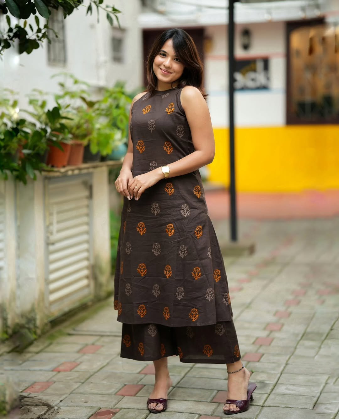Our Kurtis Capture the Spirit of Womanhood — Strong, Serene, And Beautifully Grounded. Slip Into Elegance That Speaks Louder Than Words.  DM To Shop and Discover Your Forever Favourite Today!  New In the Festive Kurta Palazzo Set. Get Your Hands on Our Beautiful Kurti with Intricate Print Work Perfect for Any Auspicious Occasion