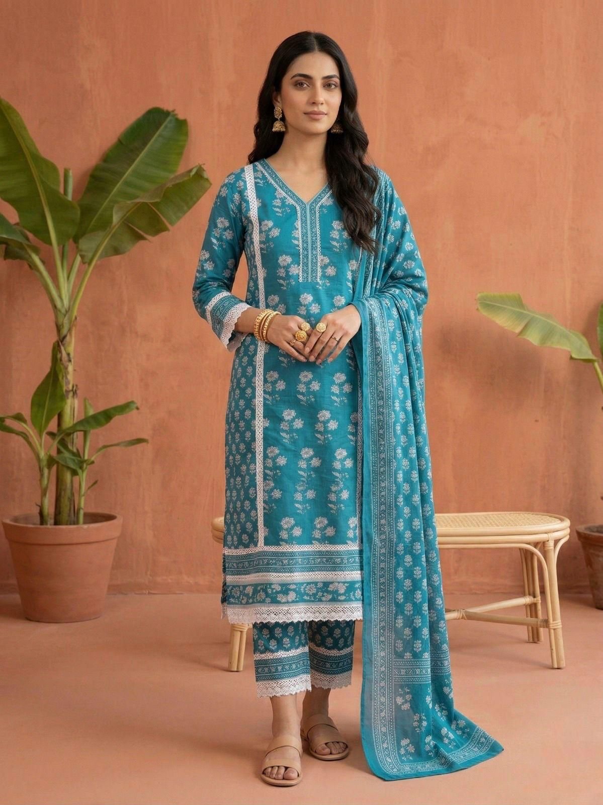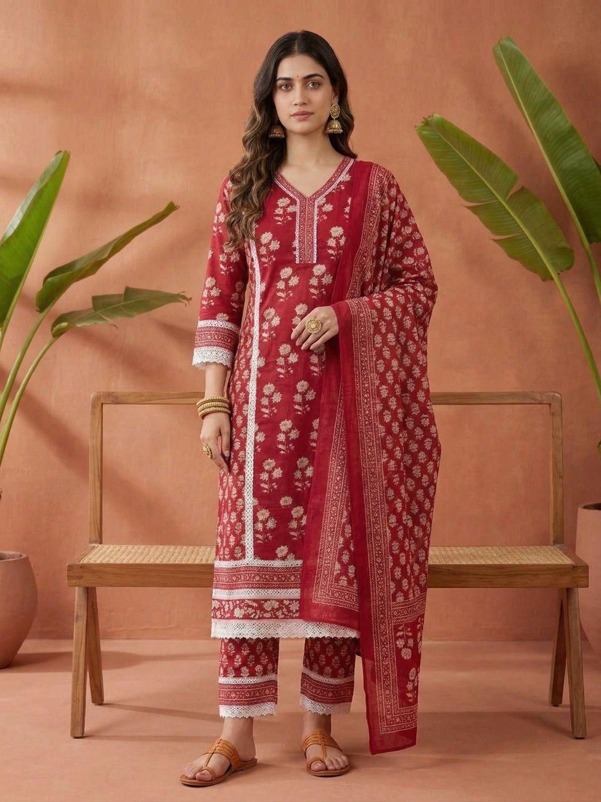 Get Ready For This Summer Season with Our Most Comfortable and Beautiful Jaipuri Printed Straight Cotton Kurti with Pant and Dupatta Set