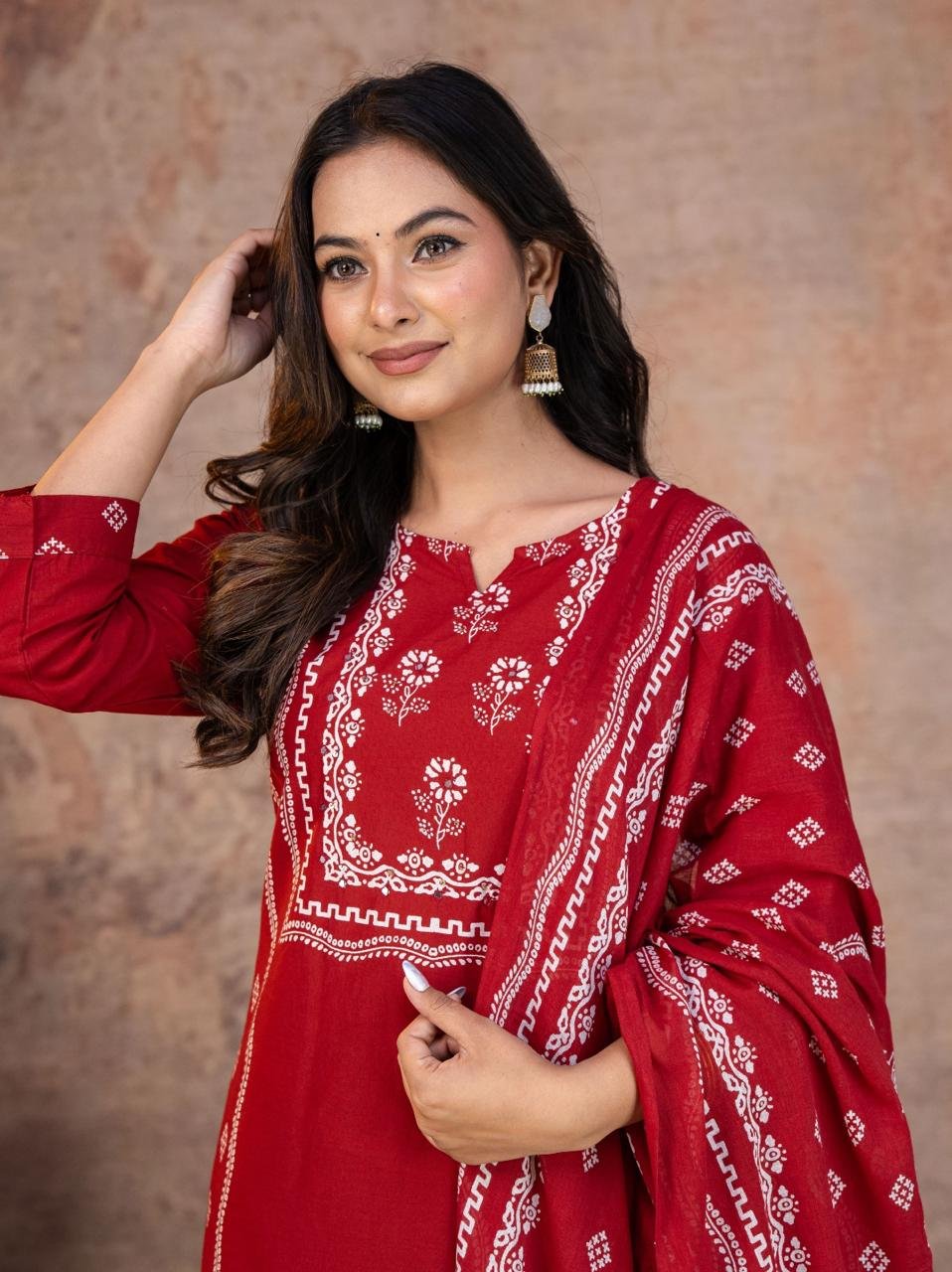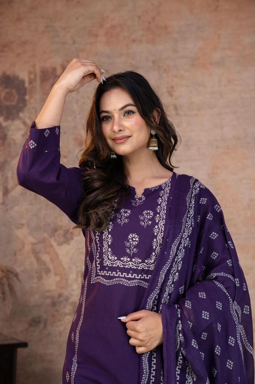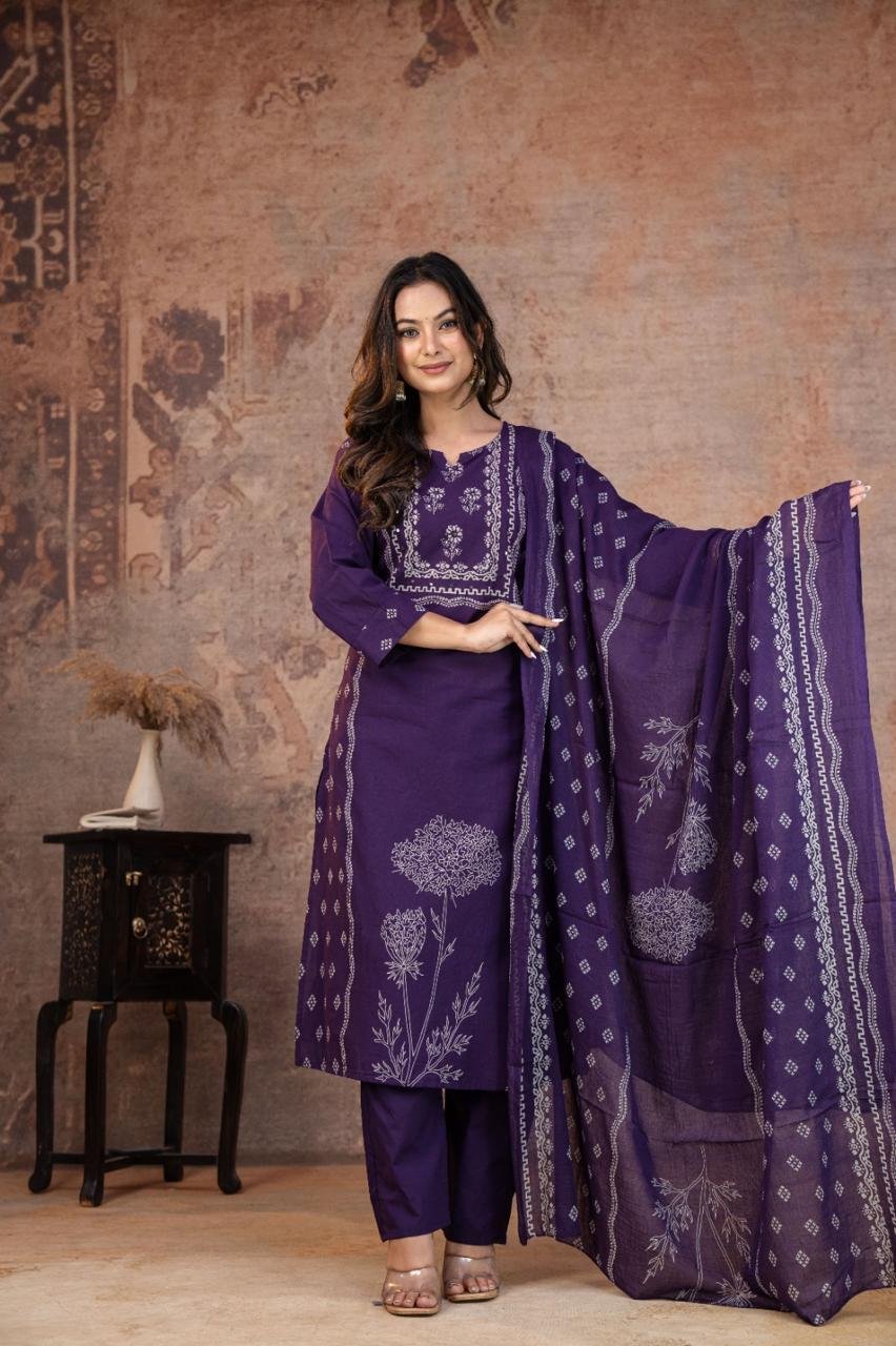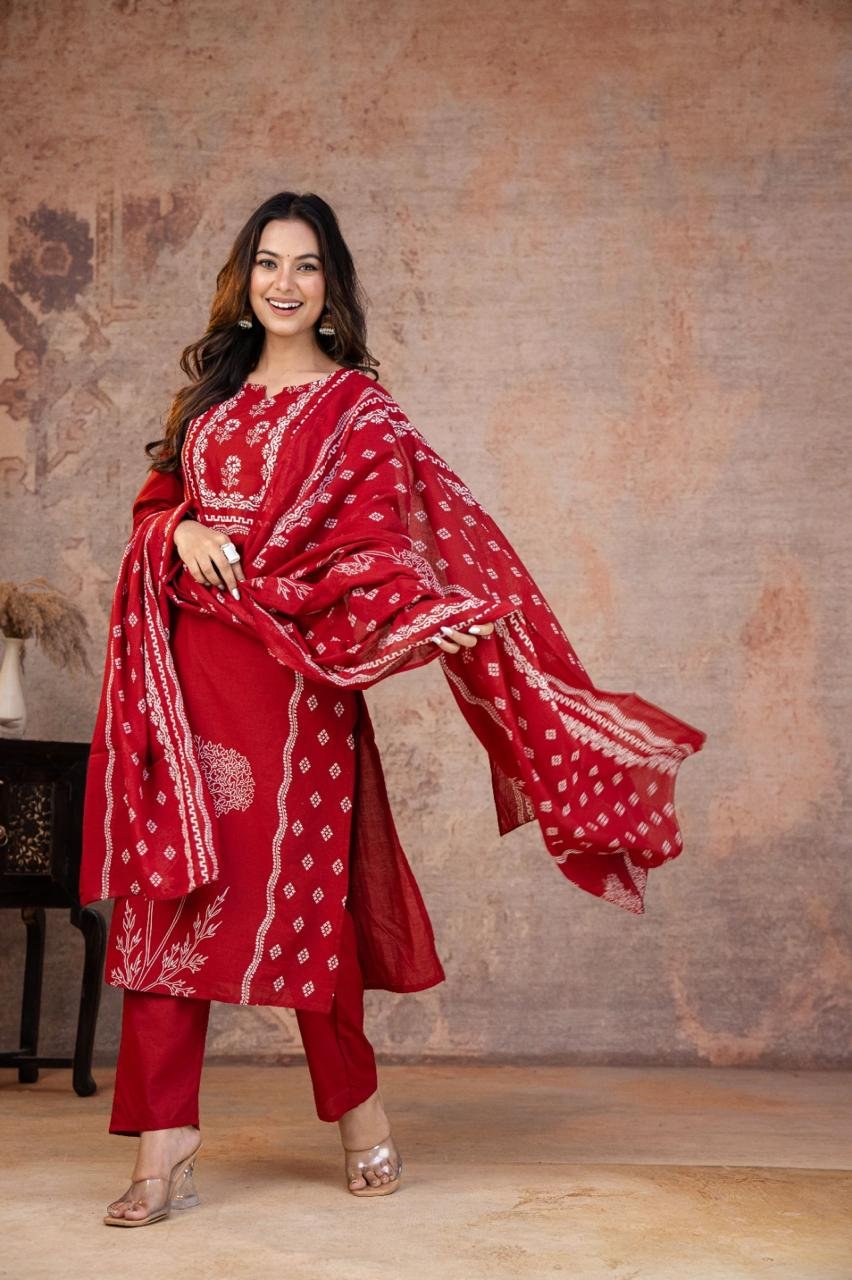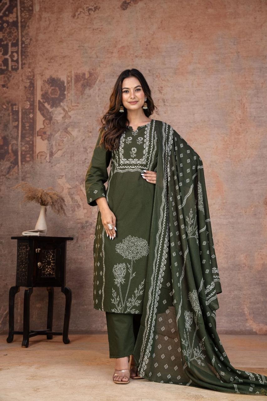 This Kurti, Pant& Dupatta Set Is Perfect For the Summer Season With Its Vibrant Print And Confident . Plus, The Included Matching Dupatta Completes the Look and Adds An Extra Touch Of Style