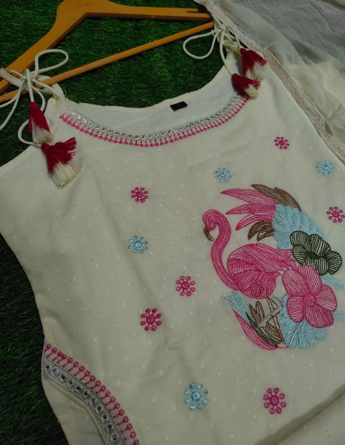 Floral White Elegant Cotton Dobby Sleeveless Kurta Suit Set