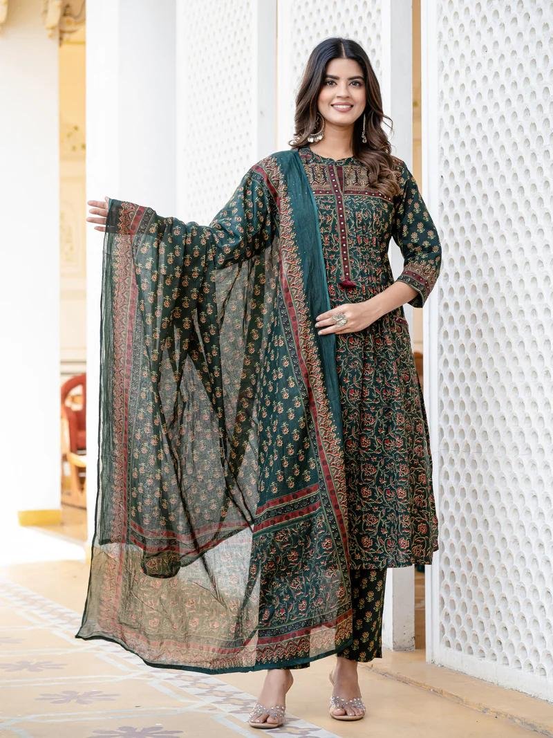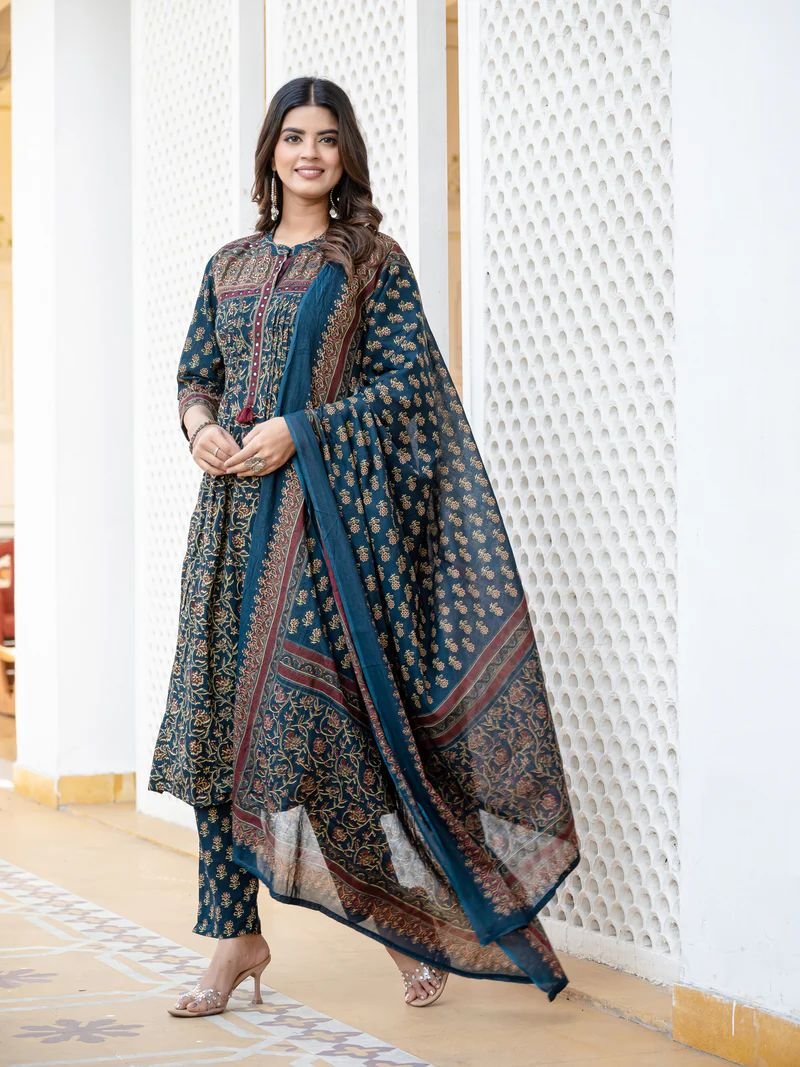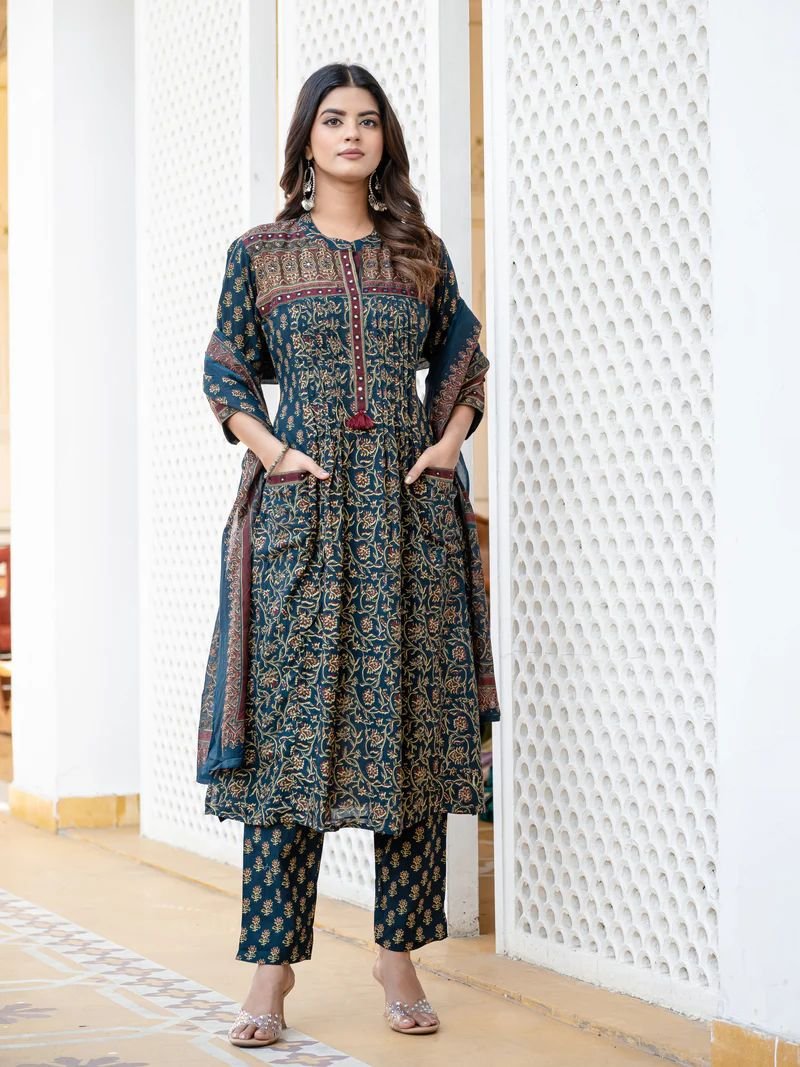 We Are Here to Spread Some Magic to Your Ethnic Printed Kurta Set. Fine Taj Cotton 60 60 Fabric with Beautiful Printed Kurti with Pant with One Side Pocket in Pant and Cotton Mumu Dupatta.