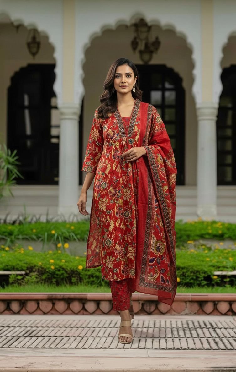 New Stylish and Affordable Beautiful Look Straight Alia Cut Set with Beautiful Print and Fabric Pure Cotton
