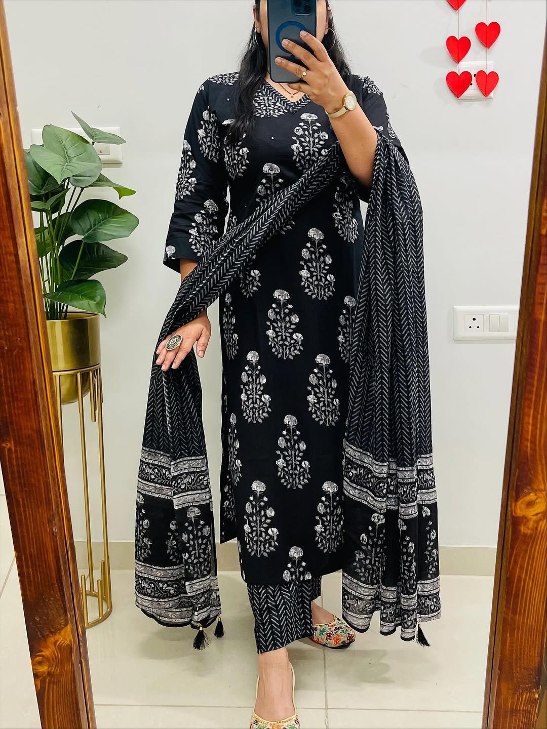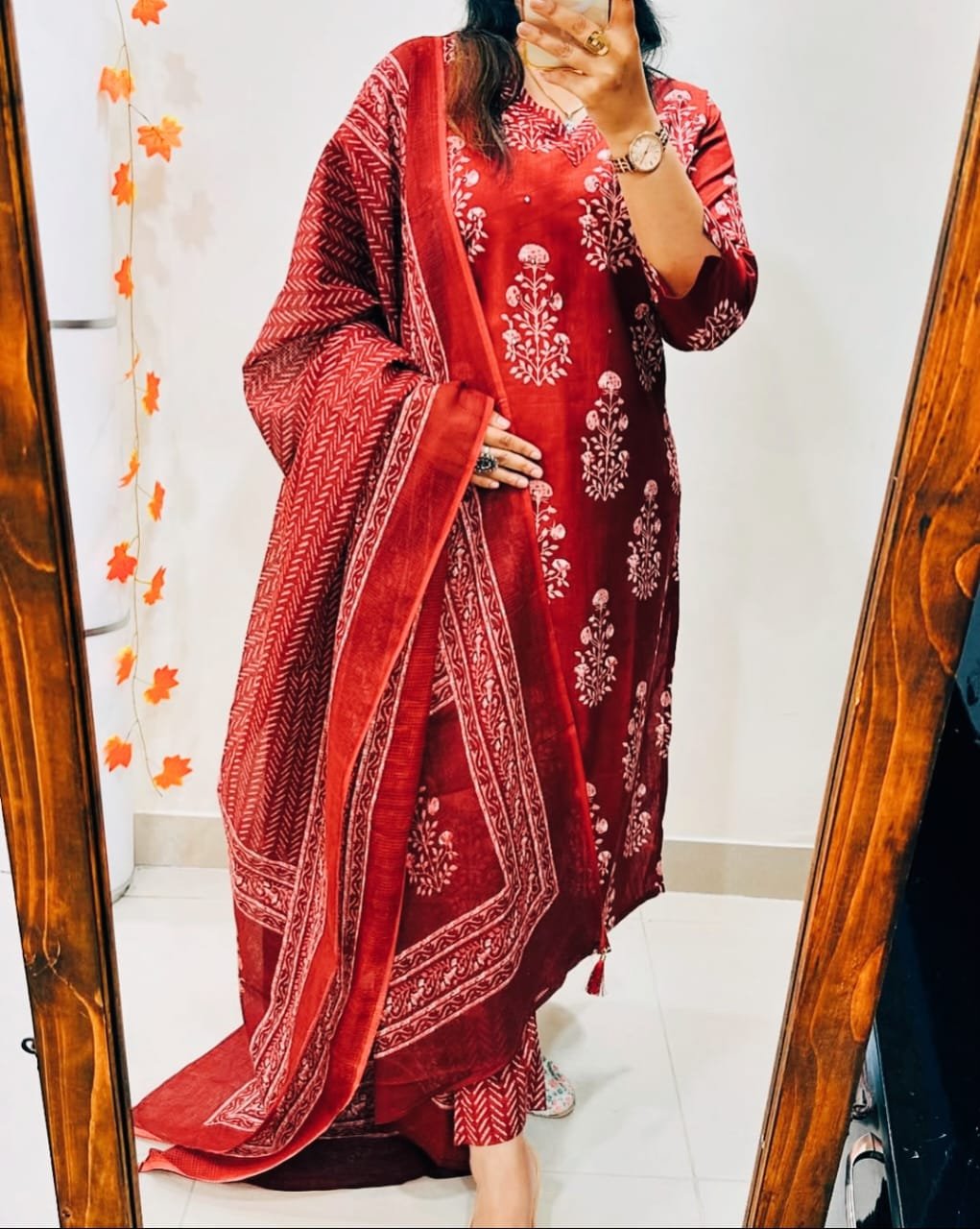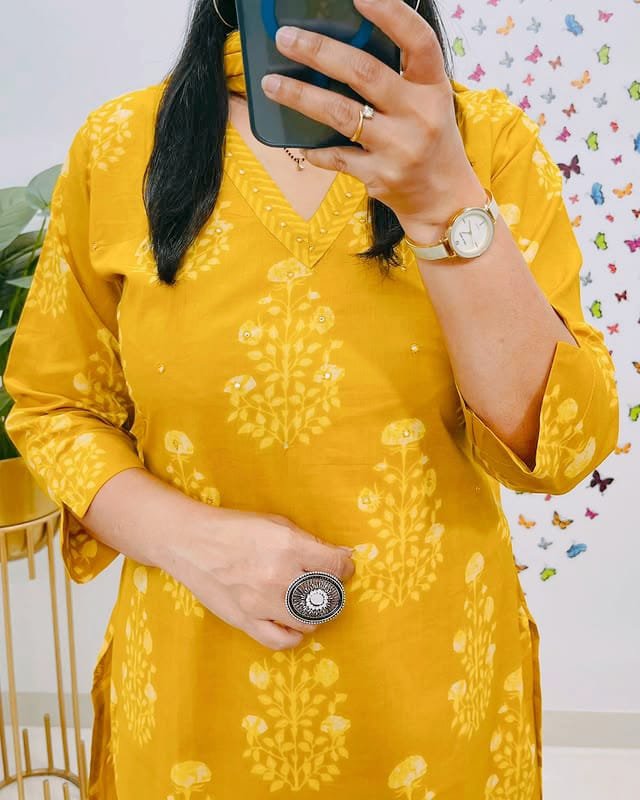 Designer Mughal/Kalamkari Fusion Floral Print Kurti Pant Dupatta Set