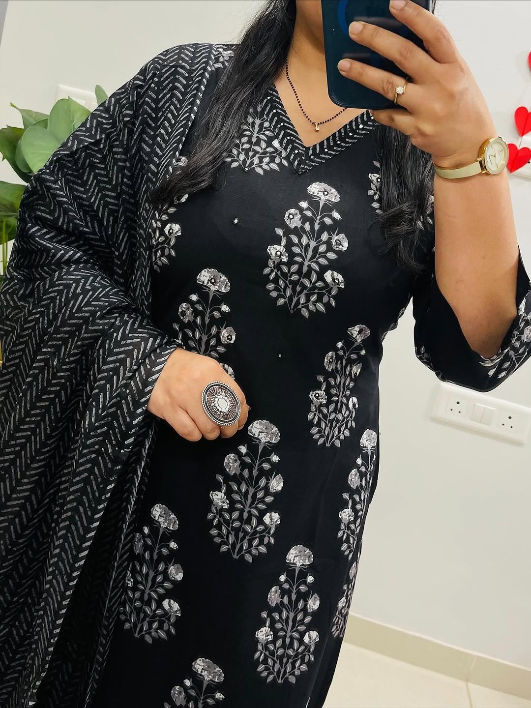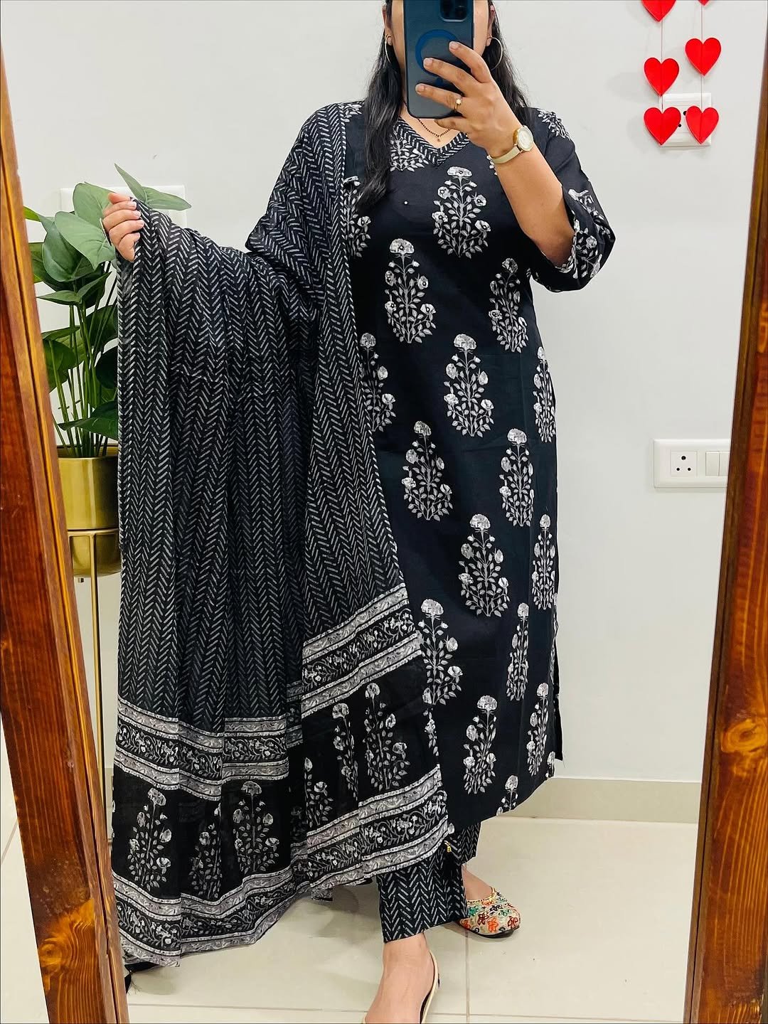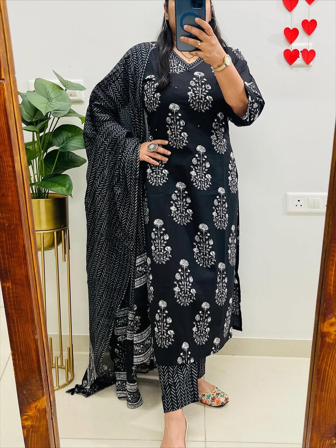 Designer Mughal/Kalamkari Fusion Floral Print Kurti Pant Dupatta Set